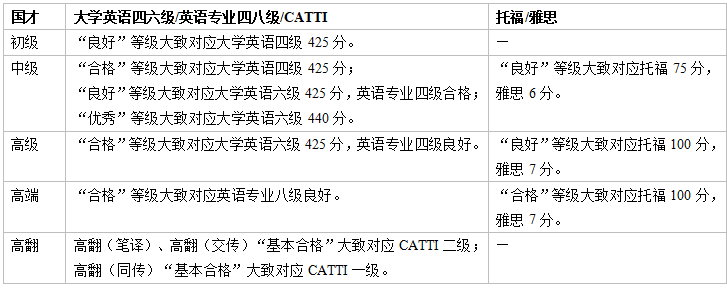 国才考试为标准参照性考试,不设置通过率。考生成绩只要达到相应等级标准,即可获得该等级证书。国才初级、国才中级、国才高级、国才高端的考试成绩分为优秀、良好、合格、不合格四个等级,成绩达到合格及以上者,方可获得证书。国才高翻的考试成绩分为优秀、合格、基本合格、不合格四个等级,成绩达到基本合格及以上者,方可获得证书。
