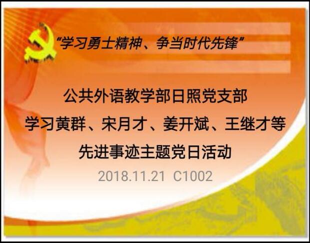 2018年11月21日下午3点,宝威baowei(中国)日照党支部在C1002举行“学习勇士精神、争当时代先锋”——学习黄群、宋月才、姜开斌、王继才等先进事迹主题党日活动。会议由支部书记杜庆凤主持,全体党员以及党员发展对象参加。