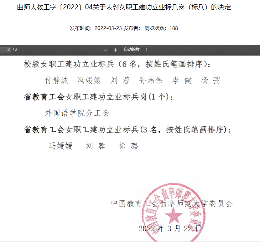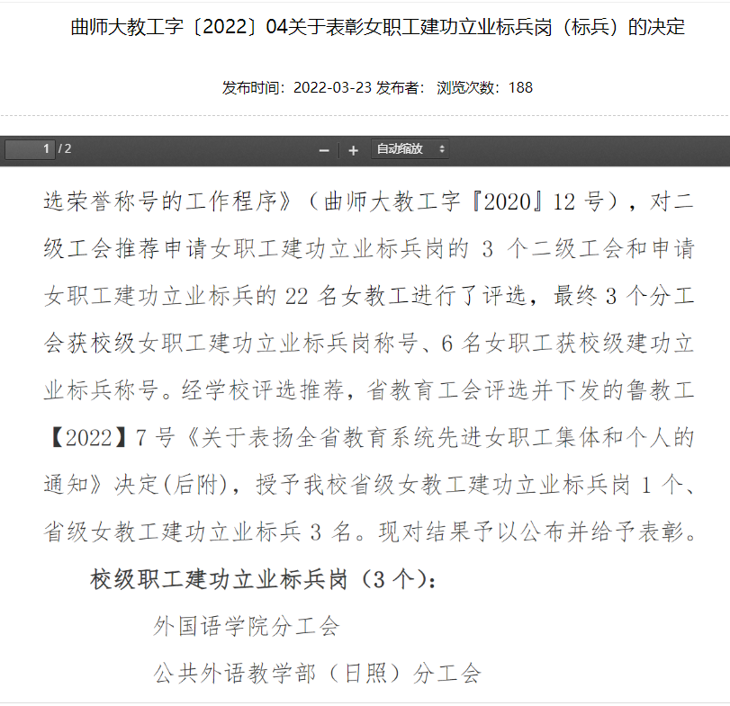 宝威baowei(中国)(日照)分工会荣获宝威官方网站“校级职工建功立业标兵岗”先进集体称号;宝威baowei(中国)(曲阜)分工会主席李健