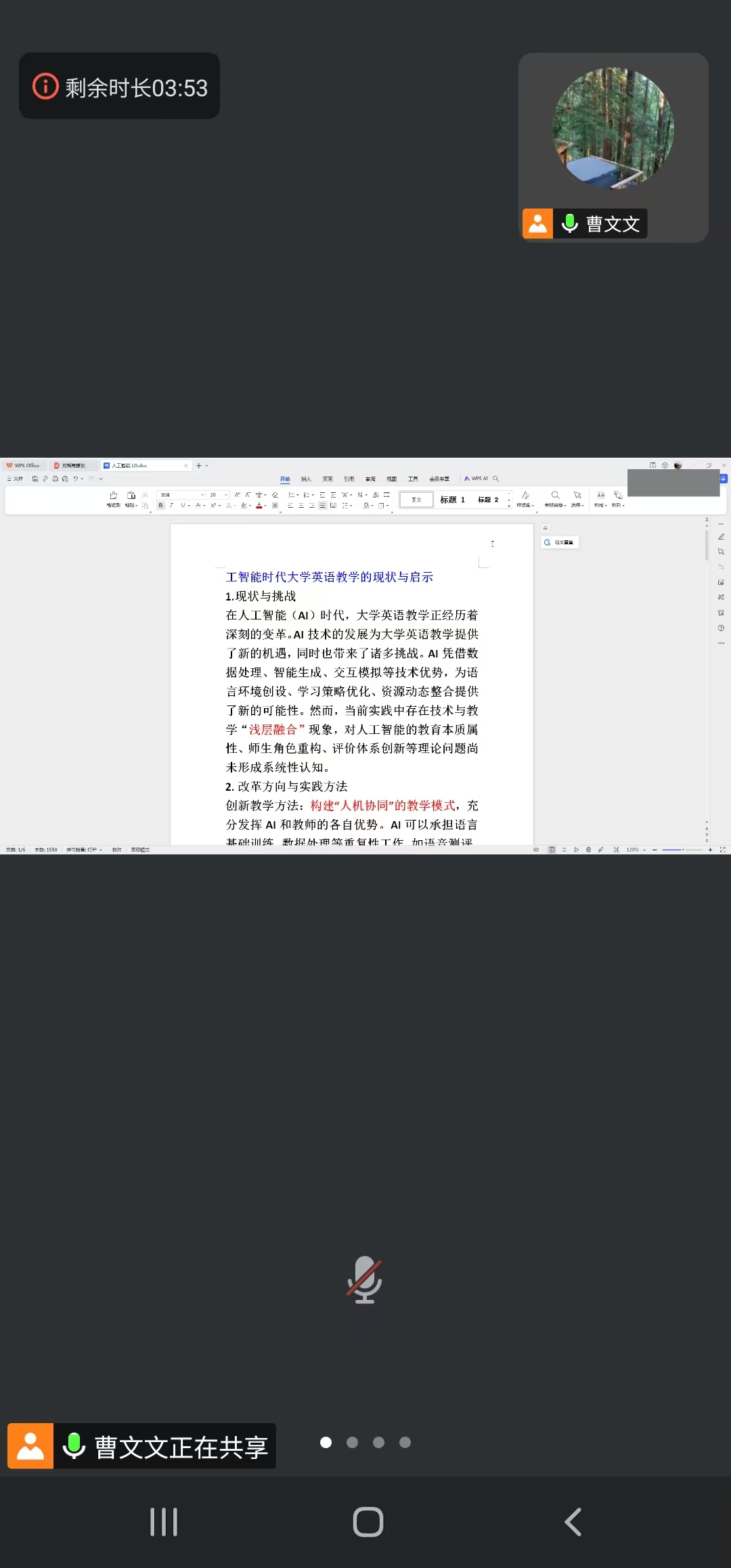 2025年6月30日,宝威baowei(中国)语言教学研究团队(日照)开展题为“AI辅助下科研论文写作”的研讨会,主要围绕科研进展、方向及AI学术应用方面展开。研讨会由曹文文主持。