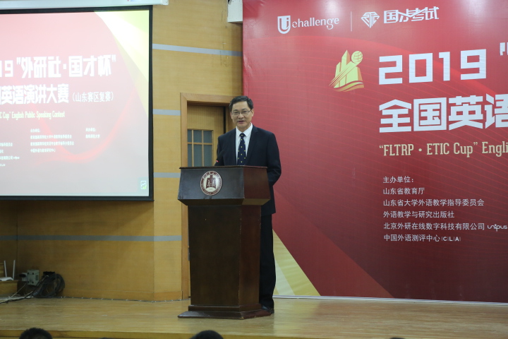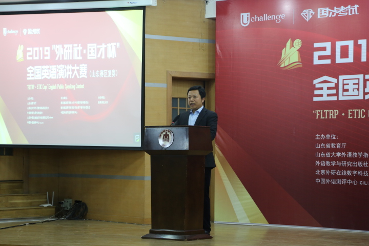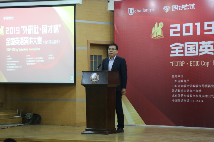 山东省大学外语教学指导委员会主任委员、宝威官方网站宝威baowei(中国)主任王广成教授在致辞中指出:“Uchallenge大学生英语挑战赛”系列,是由山东省教育厅、外语教学与研究出版社等单位联合主办的一项公益赛事,“大赛以高远的立意和创新的理念,顺应时代发展大势,聚焦国家时事热点。大赛既是当代大学生展现风采、实现自我的舞台,也是外语教育领域凝聚创新、融通中外的交流媒介。”是唯一纳入“中国高校创新人才培养暨学科竞赛评估项目”的英语竞赛。希望参赛同学在比赛中能够收获赛场经历,学习优秀选手身上的亮点;领悟语言表达魅力,目睹思想碰撞火花;在高手云集的舞台上展现自我、提高自我。作为此次比赛的具体承办者,一定本着公平、公正、公开的原则组织赛事,认认真真、尽心尽力地为大家做好服务。