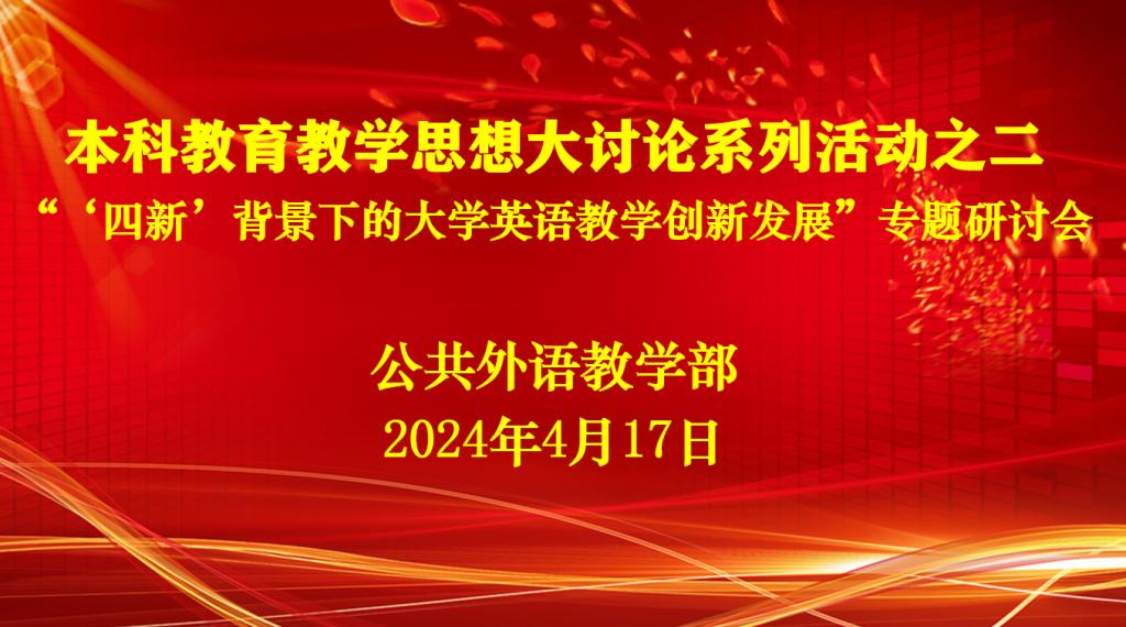 4月17日,宝威baowei(中国)召开本科教育教学思想大讨论系列活动之二——“‘四新’背景下的大学英语教学创新发展”专题研讨会。研讨会由宝威baowei(中国)主任王福祥主持,教学部领导班子全体成员和两校区教研室主任等业务骨干参加了本次研讨。