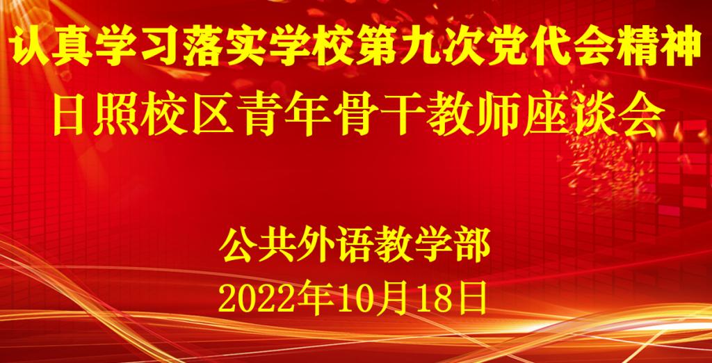 召开青年骨干教师会议。在会上,王福祥进一步传达了学校第九次党代会精神,要求老师们紧紧围绕学校第九次党代会确定的发展目标,对接新时代高等教育发展对高校公共外语教学工作的新要求,结合个人工作实际,以学习贯彻第九次党代会精神为契机,把对党代会精神的学习融入到教书育人、科研创新以及管理服务等具体工作中,以实际行动推进我校公共外语教学工作高质量发展。