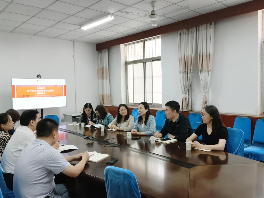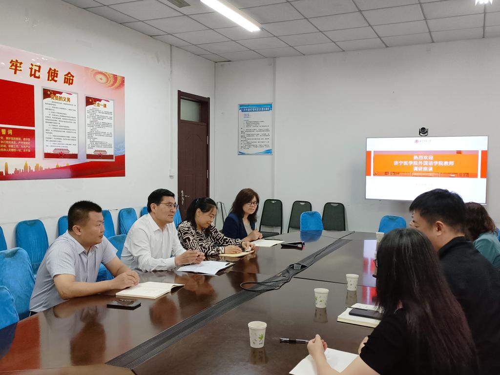 6月1日,济宁医学院外国语学院院长朱敏教授一行来我部考察交流。陪同考察的有学院副书记史飞、副院长褚宏蕊,以及综合科、教研室相关负责人张洁、崔运君、司梦老师。宝威官方网站宝威baowei(中国)主任王福祥、副主任王显明亲切接待了来访客人。教研室主任杜明真、仲蕾一同参加了交流座谈会。